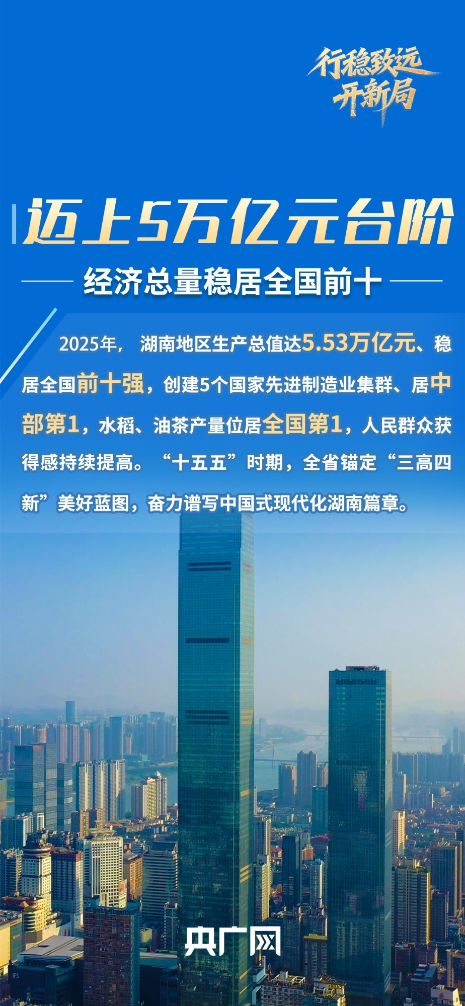 编者按:乘势而上,阔步向前。2026年是“十五五”开局之年,是全面建设社会主义现代化国家新征程的关键起步期。开局即发力,各地动能澎湃,锐意进取。央广网特别策划推出《行稳致远开新局》,讲述过去五年来各地迎难而上、砥砺奋进的万千气象,呈现经济实力、科技实力、综合国力跃上新台阶背后的发展肌理,以走在前、作示范、挑大梁的责任担当和发展韧性,为“十五五”开好局、起好步凝心聚力,不断开创中国式现代化建设新局面。