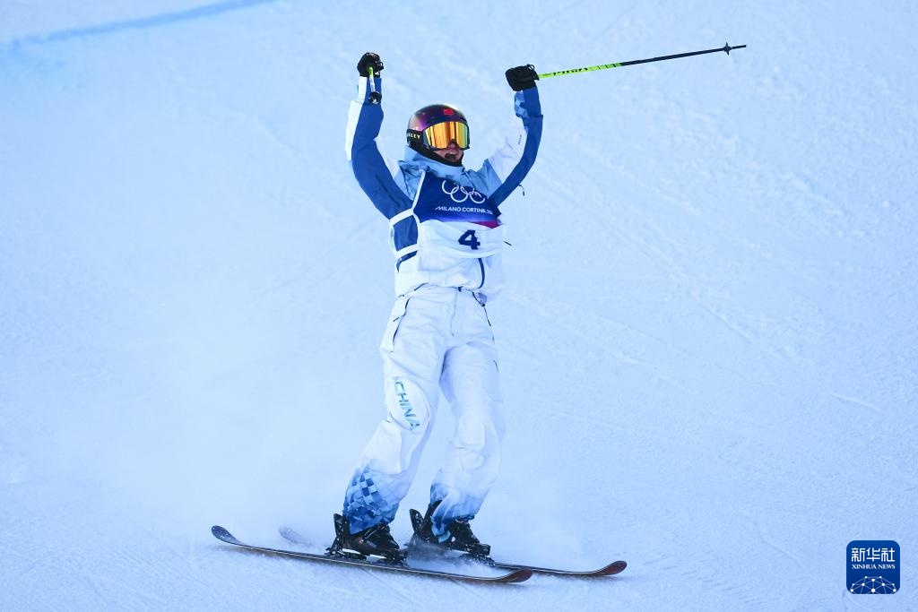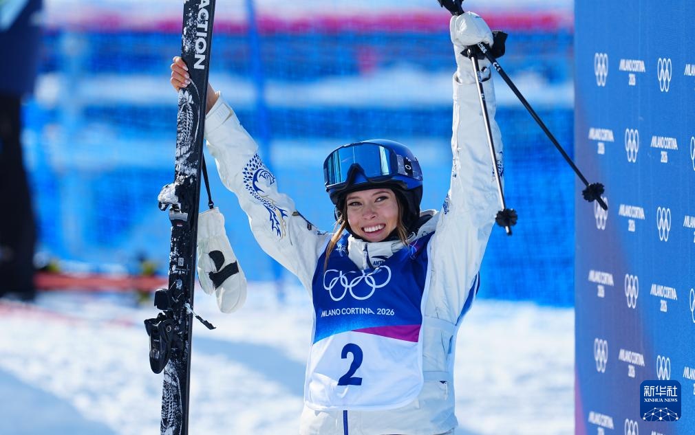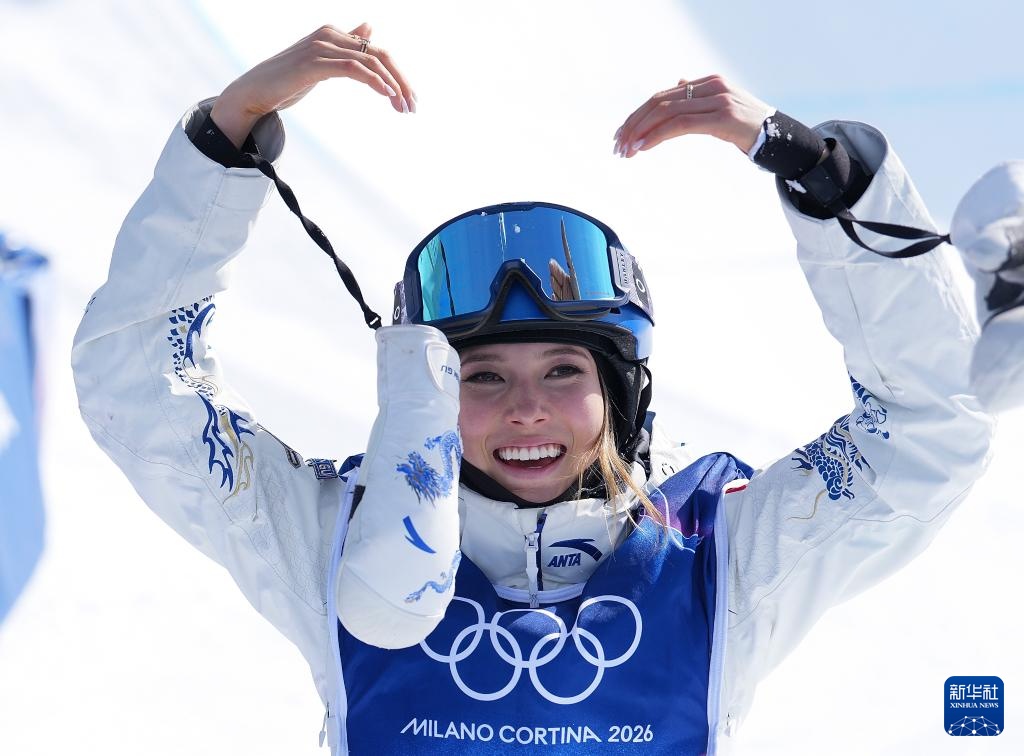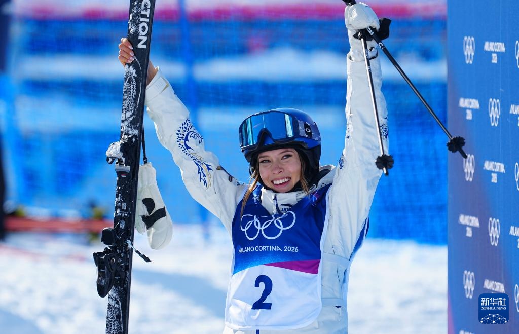 2月22日,中国选手谷爱凌在第二轮比赛后庆祝。新华社记者 胡超 摄