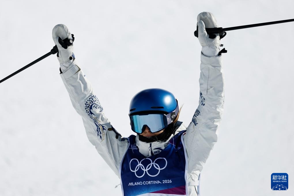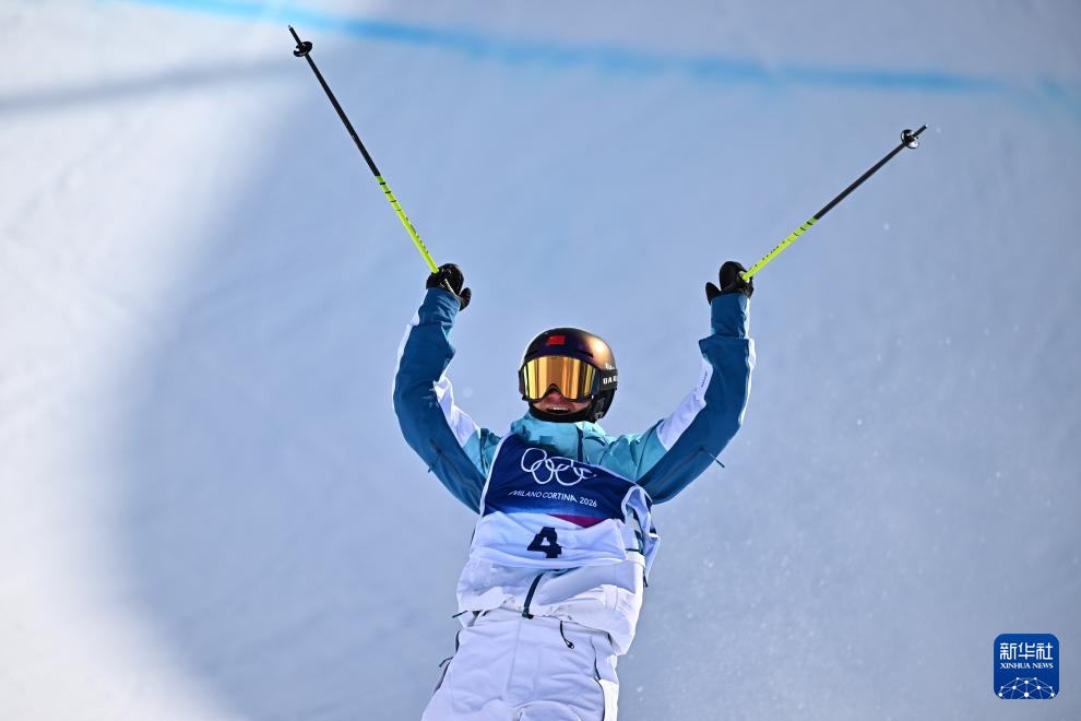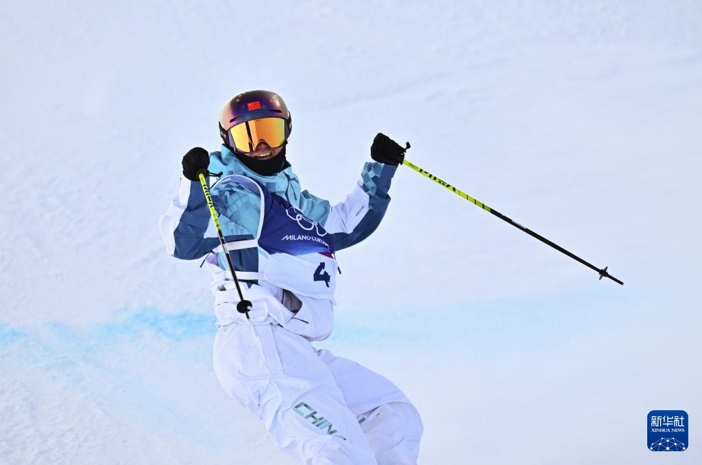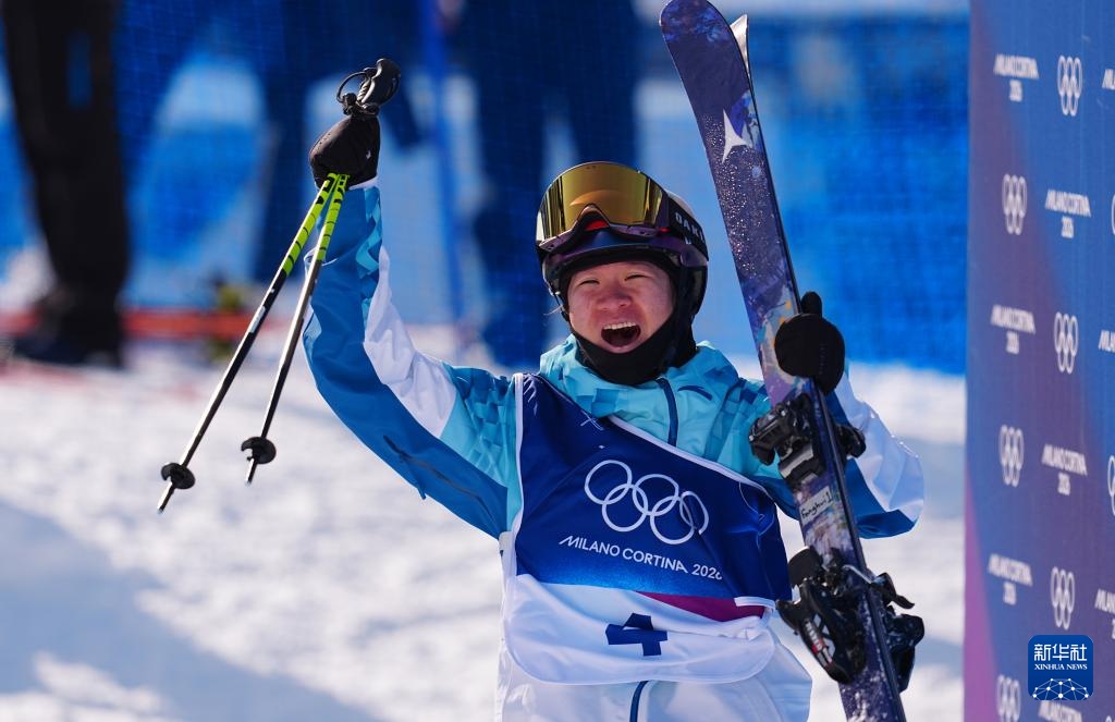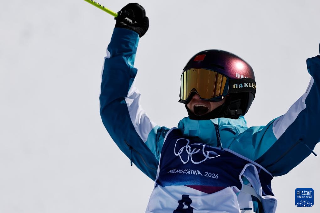 2月22日,中国选手谷爱凌在第二轮比赛后庆祝。新华社记者 张宏祥 摄