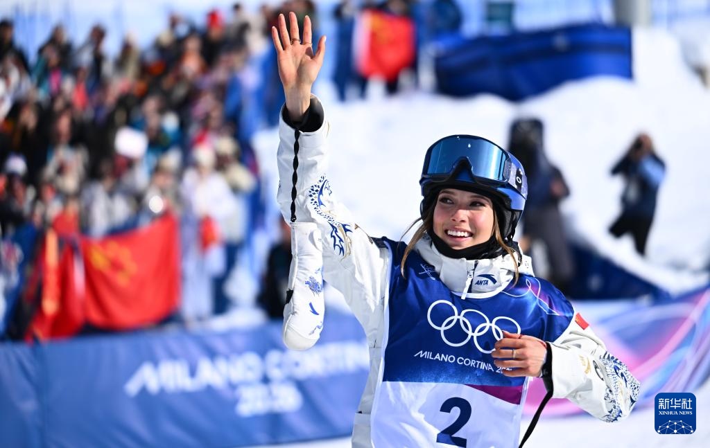 2月22日,中国选手谷爱凌夺冠后向观众致意。新华社记者 张宏祥 摄