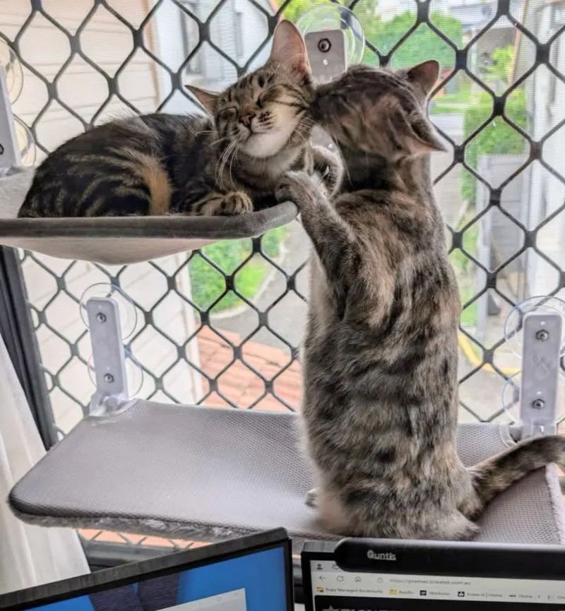 更神奇的是,这两只虽然住在同一个救助站,但从来没有见过面的猫咪。居然在到家以后,就表现出一副亲姐妹的样子。一见如故,关系非常好。